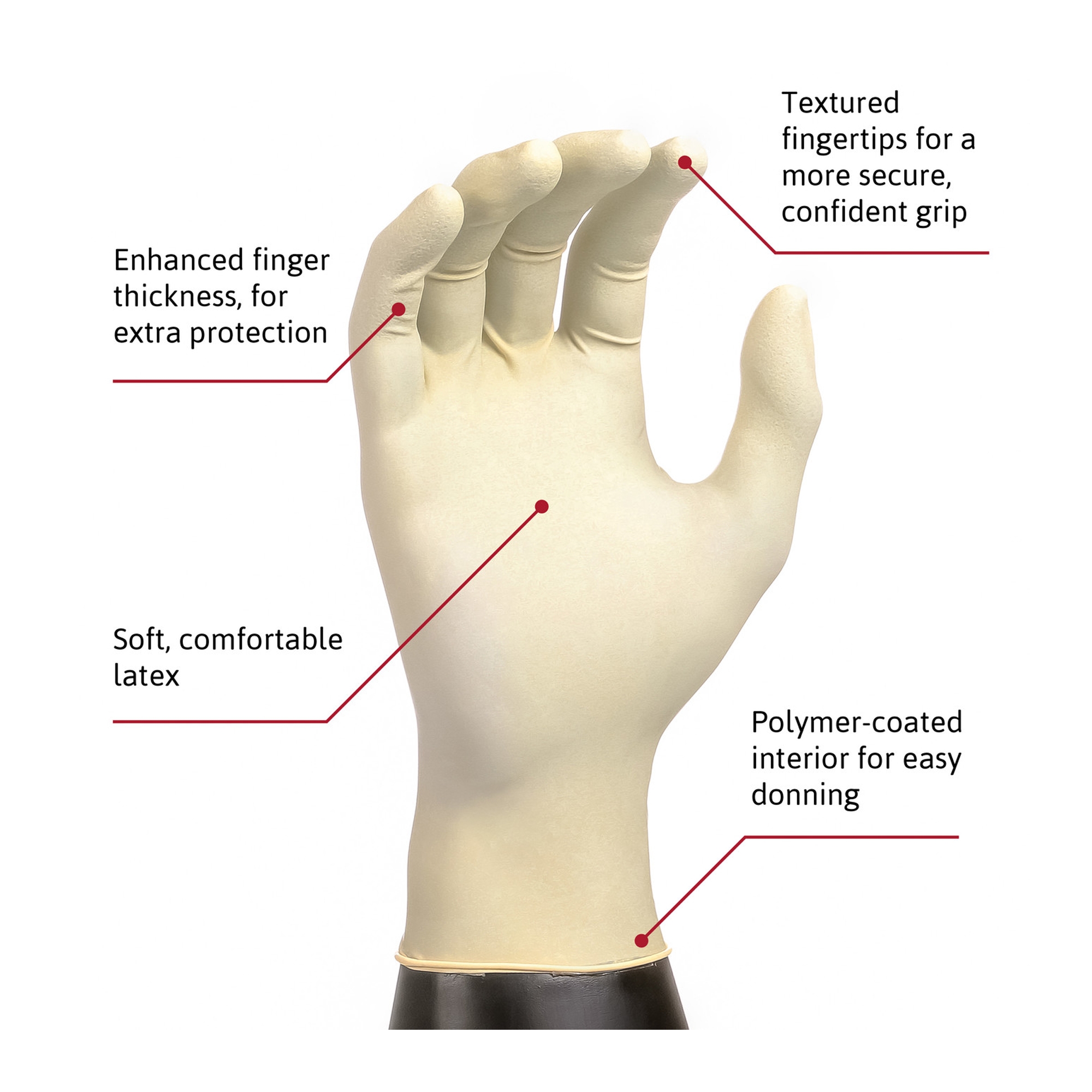 • Textured fingertips ensure a secure, confident grip over even oily objects